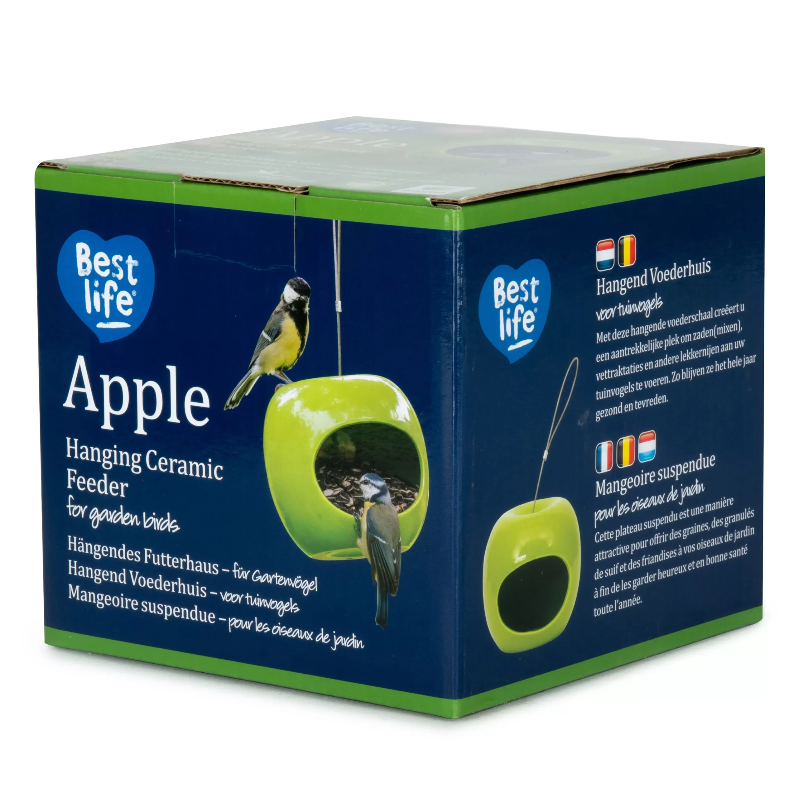 With the Apple feeder easily offer a range of nutritious seeds or seed mixes. This easy to hang feeder features three water drainage holes with its fun, vibrant design.