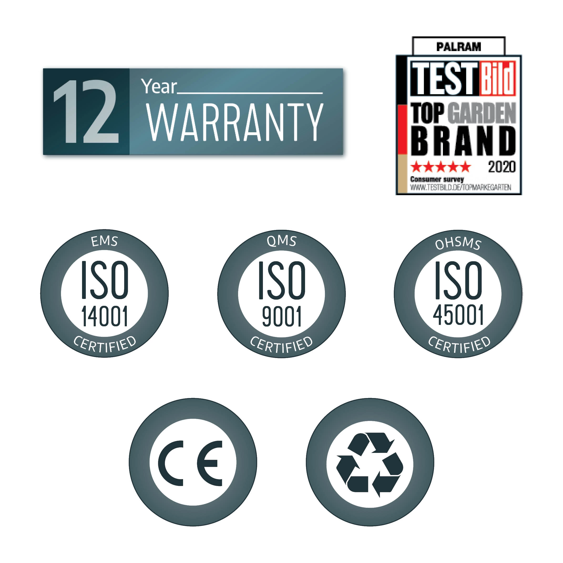 - Robust structure – reinforced design with durable, corrosion resistant powder coated grey aluminium profiles and galvanised steel connectors