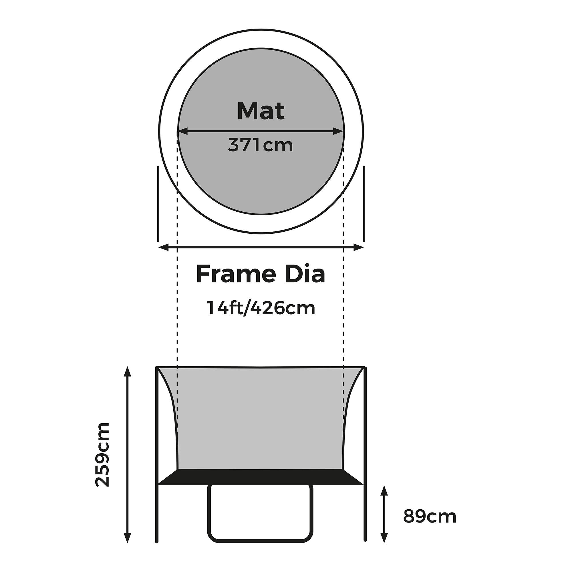 - Trampoline Ladder, cover, and integral shoe tidy included
